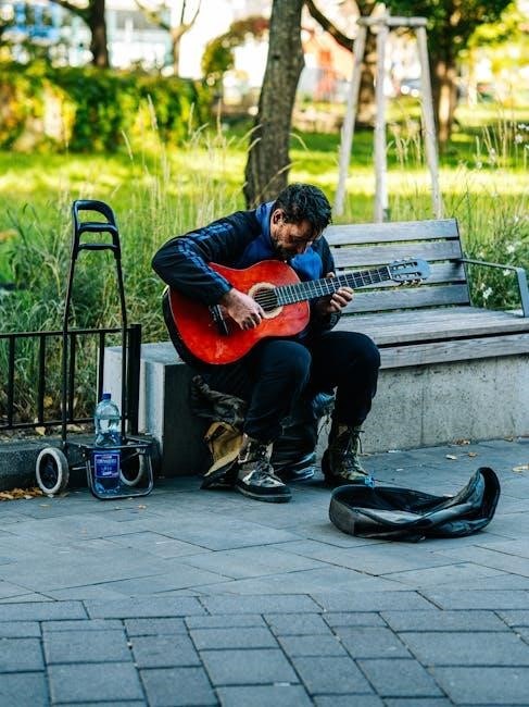 Improvisation is where scales truly come alive‚ allowing guitarists to express emotions and creativity freely. Mastery of scales enables spontaneous solos and melodies‚ making music feel natural and intuitive. Scale charts are invaluable for visualizing patterns‚ helping players navigate the fretboard seamlessly during live performances or jam sessions. Start with familiar scales like the minor pentatonic‚ then experiment with blues and exotic scales for added depth. Practice improvising over chord progressions to develop musicality and confidence. Remember‚ improvisation is about feeling the music and letting your fingers translate that emotion into sound.